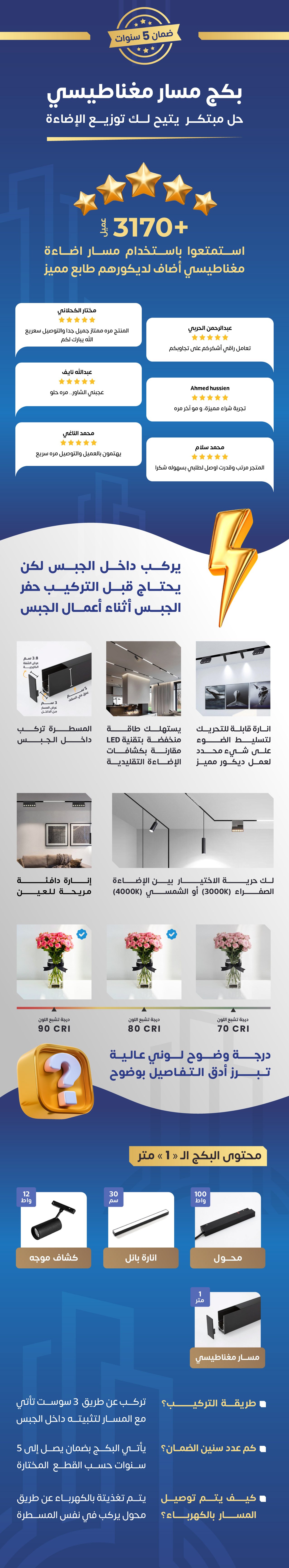 محتويات البكج: مسار مغناطيسي 1 متر - انارة بنل 30 سم - كشاف موجه 12 واط - محول 100 واط.