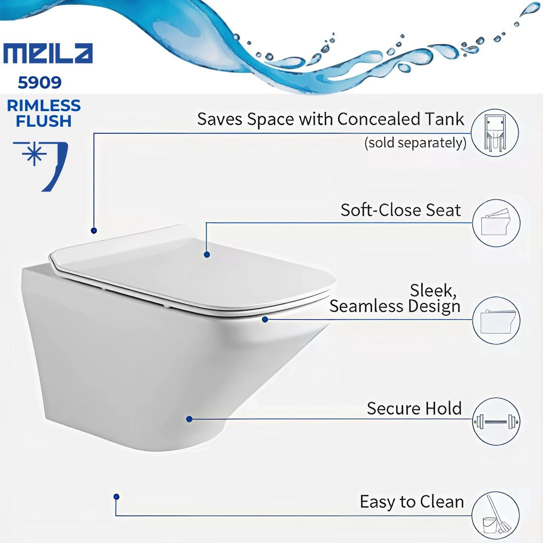 • بدون حافة يتميز مرحاض MEILA بتصميم خالٍ من الحواف، مما يمنع تراكم الأوساخ والجراثيم ويوفر أعلى مستويات النظافة.