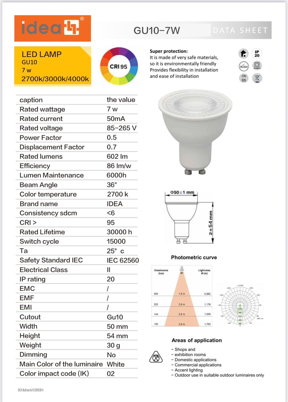 درجة الاضاءة: 2700 كالفن.اللون الاصفر